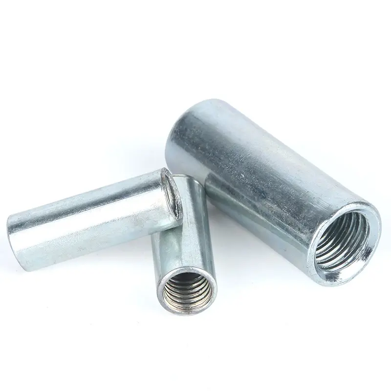 The Galvanized White Blue Zinc Plated DIN6334 Hex Coupling Long Nuts are extended hexagonal fasteners designed for linking threaded rods in demanding structural applications, providing secure extensions with enhanced corrosion protection. These coupling nuts feature a uniform zinc electroplating in white for a bright, smooth finish suitable for aesthetic or indoor uses, or blue for added passivation in moderately humid environments, forming a reliable barrier against rust and oxidation. Primarily constructed from carbon steel in grades 4.8 to 12.9, with stainless steel alternatives for harsh conditions, they adhere to DIN6334 standards and offer metric sizes from M4 to M24. Their elongated, hollow design ensures even torque distribution, preventing thread stripping and enabling adjustable assemblies without weakening joints. Ideal for heavy industry such as construction scaffolding, automotive chassis extensions, and machinery linkages, these long nuts deliver high-strength, vibration-resistant connections. Manufactured by Duojia in Hebei, China, they comply with ISO9001, ISO14001, and ISO45001 for quality and sustainability. With a production rate of 10,000 pieces monthly, bulk packaging options, and worldwide exports, these galvanized hex coupling nuts provide economical, durable solutions for professionals requiring robust thread elongation in outdoor or industrial settings, optimizing load-bearing capacity and assembly versatility.