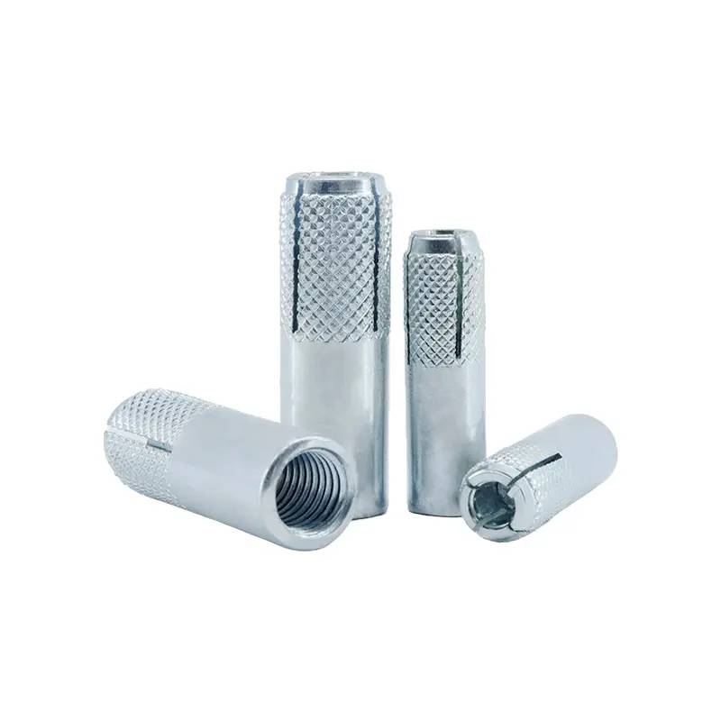 The WZP Drop-in Anchor features a cylindrical body with four pre-cut expansion slots and a knurled exterior. This knurling is a critical design element that significantly increases friction against the wall of the drilled hole, preventing the anchor from spinning during installation. Internally, the anchor houses a solid expander plug at its base. The installation mechanism is straightforward and effective: after inserting the anchor into a clean, pre-drilled hole, a dedicated setting tool is used to strike the plug. This action drives the plug up into the tapered section of the anchor, forcing the four segments to expand outwards and create a secure, 360-degree frictional lock within the concrete. The entire anchor is coated with a White Zinc Plating (WZP) via an electro-galvanization process, which provides a protective barrier against rust and corrosion in indoor and dry environments. The internal threads are precision-machined to accept standard metric bolts and threaded rods, offering versatile and convenient fixture attachment.