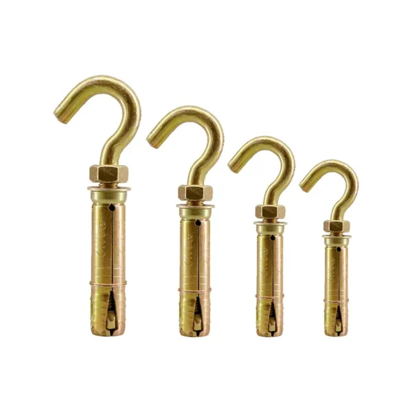 Четырехкомпонентный анкерный крепеж с крюковым болтом специально разработан для задач, требующих подвешивания объектов к потолкам или стенам. В промышленных и складских условиях, он используется для подвеса талей, тяжелого инструмента, оборудования и промышленного освещения. На строительных объектах, он идеально подходит для крепления связей лесов, страховочных тросов и временных подвесок коммуникаций. В коммерческих и торговых помещениях, он может использоваться для подвеса тяжелых вывесок, крупных дисплеев или декоративных конструкций. Он также является популярным выбором для бытового и рекреационного использования в гаражах или подвалах для подвеса таких предметов, как боксерские груши, качели или тяжелые системы хранения, при условии достаточной несущей способности основного материала.